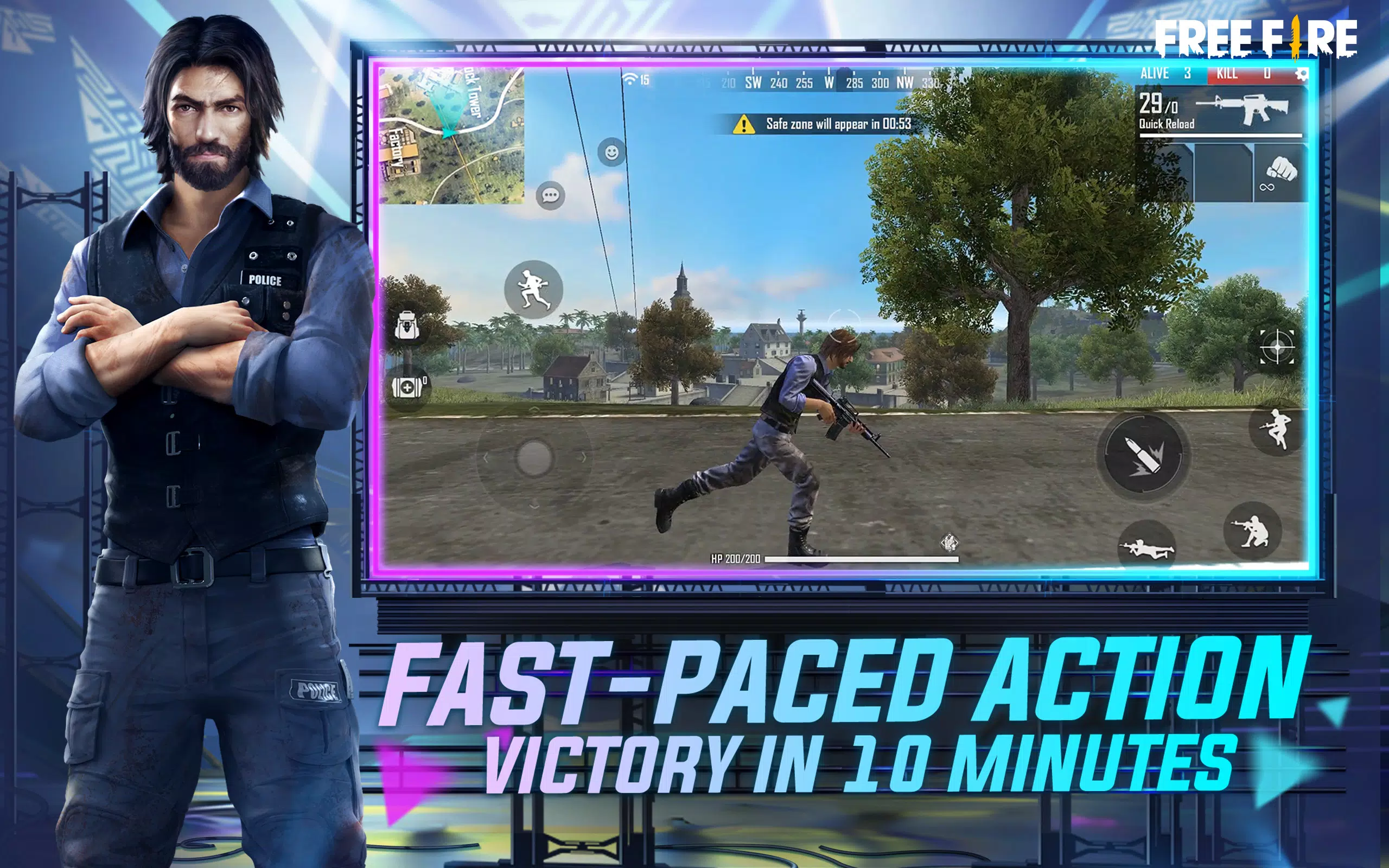 Free Fire is the ultimate survival shooter game available on mobile. Each 10-minute game places you on a remote island where you are pit against 49 other players, all seeking survival. Players freely choose their starting point with their parachute, and aim to stay in the safe zone for as long as possible. Drive vehicles to explore the vast map, hide in the wild, or become invisible by proning under grass or rifts. Ambush, snipe, survive, there is only one goal: to survive and answer the call of duty.